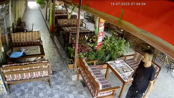 Mustafa Öztürk'ün derin uykuda olduğu saatte henüz kimliği belirlenemeyen bir kişi tarafından 11 bin lira değerindeki cep telefonu çalıntı. O anlar çay evinin güvenlik kamerası tarafından saniye saniye kaydedildi. Kameradaki kayda göre, genç adam çay evinin oturma alanlarında sırt üstü uyuyor. Şimdilik kimliği belirsiz olsa da yüzü açıkça görünen bir kişi çay evine geldi. Öztürk'ün başında kısa bir süre bekleyen ve çevreyi gözetleyen kişi, biraz ilerledikten sonra tekrar geri gelerek genç adamın kucağındaki cep telefonunu çaldı. Telefon hırsızı kişi kısa bir süre daha çevreyi gözetledikten sonra çayevinden uzaklaştı. Bir süre sonra uyanan ve telefonun olmadığını fark eden Mustafa Öztürk, durumu polise bildirdi. Çayevinde inceleme yapan polis, hırsızlık anını kaydeden kameranın kayıtlarını inceledi. Olayla ilgili tahkikat sürüyor.