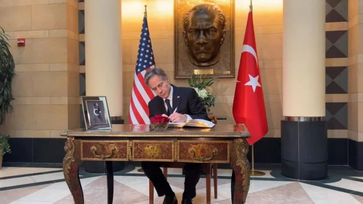 ABD Dışişleri Bakanı Antony Blinken, Kahramanmaraş merkezli depremlerin ardından Türkiye'nin Washington Büyükelçiliğinde açılan taziye defterini imzaladı.