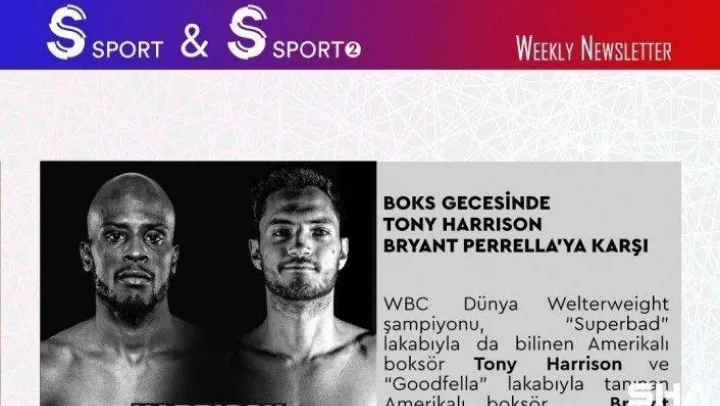 Boks gecesinde WBC Dünya Welterweight şampiyonu Tony Harrison ile ABD'li Bryant Perrella karşı karşıya gelecek. WBC Dünya Welterweight şampiyonu 'Superbad' lakabıyla bilinen ABD'li boksör Tony Harrison ile 'Goodfella' lakabıyla tanınan ABD'li boksör Bryant Perrella karşı karşıya gelecek. Heyecan dolu bu karşılaşma pazar günü saat 03.00'de canlı yayınla S Sport2'den yayınlanacak.