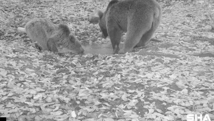 Uludağ Milli Parkı'nda fotokapana yakalanan boz ayılar böyle görüntülendi.