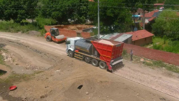 Bozüyük Belediyesi Fen İşleri Müdürlüğü ekipleri tarafından cadde ve sokaklarda başlatılan yol düzenleme çalışmaları Çarşı Mahalle Baharözü mevkiinde sathi kaplama çalışmaları ile devam ediyor.