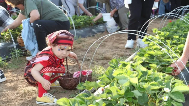 Konuşmaların ardından Başkan Hürriyet ve vatandaşlar çilek topladı.