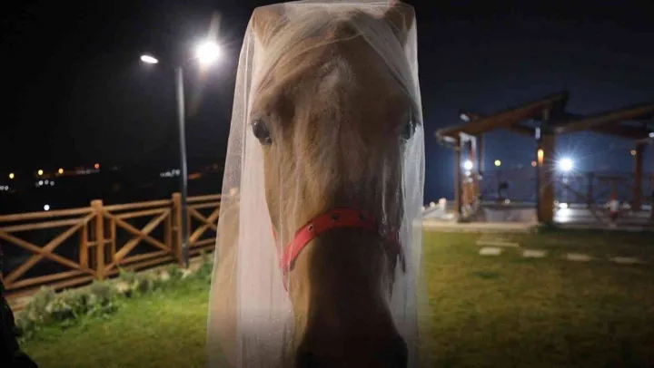 Kocaeli'nin Darıca ilçesinde bir binicilik kulübünde atlar için önce kına gecesi, sonra da davullu zurnalı düğün yaptılar.