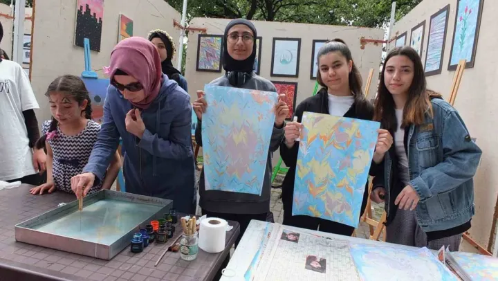 Büşra Aksoy'un öğretmenliğini yaptığı kursta üretilen ebrular Ören Meydanında görücüye çıktı. Ören Meydanında stant kuran İmam Hatipli öğrenciler, yaptıklarını sergilerken, bir taraftan da ebru yapımını öğretti. Meraklılara ebru öğrettiğini anlatan Nida Nur Yılmaz, seriyi ziyaret edenlere teşekkür etti. Sergiyi ziyaret eden Okul Müdürü Ahmet Ulvi Kara da, 'Öğrencilerimizi kutluyorum. Burada eserlerini sergiledikleri gibi ebru yapımını da gösteriyorlar. Hepsine teşekkür ederim' dedi.