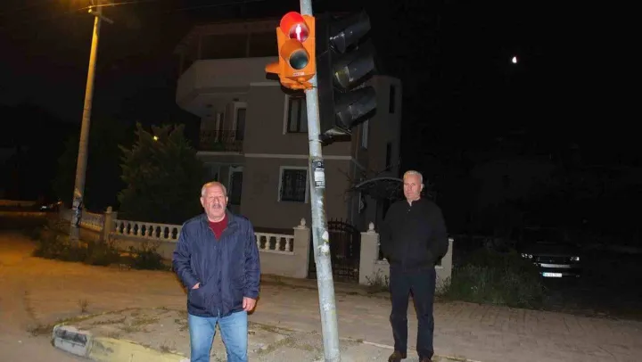 Burhaniye'de hasarlı trafik ışığı ilgi bekliyor