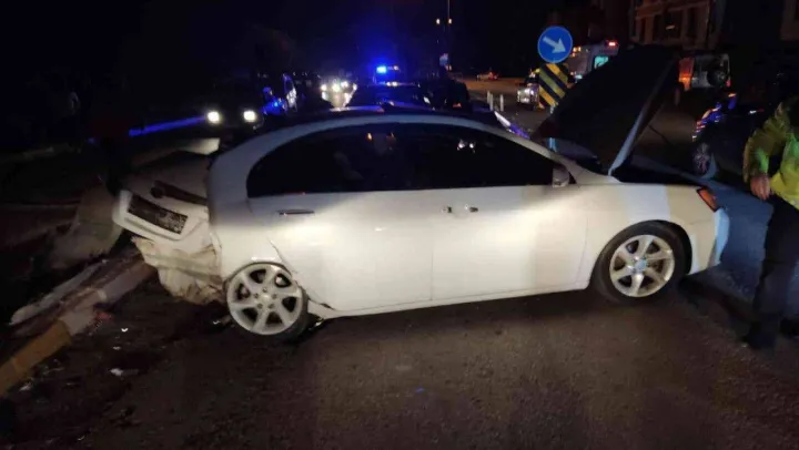 Balıkesir'in Burhaniye ilçesinde, refüje çarpan otomobildeki 4 kişi yaralandı.