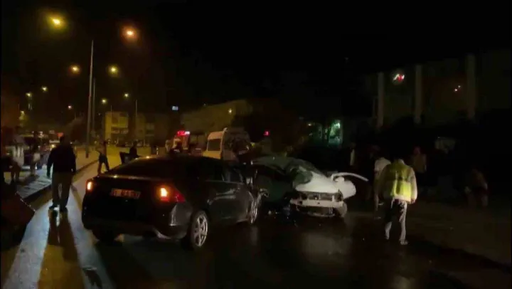 Bursa'da 2 araç kafa kafaya çarpıştı. 1'i ağır 2 kişi yaralandı.