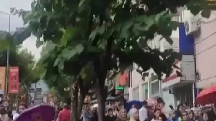 Bursa'da alışveriş çılgınlığı: Sağanak yağışa aldırmadan sıraya girdiler
