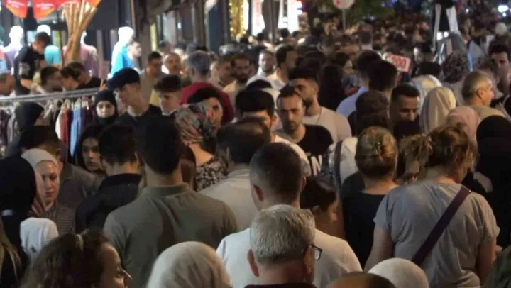 Bursa'da vatandaşlar gece saatlerinde bayram alışverişi yapmak için çarşıya akın etti.