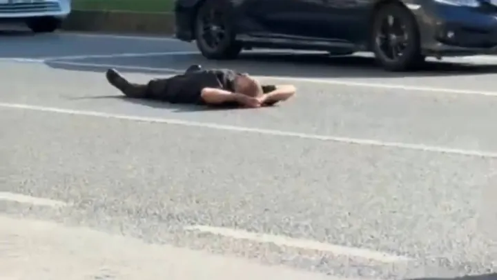Bursa'nın Orhangazi ilçesindee trafikte yüzlerce aracın yoğun bir şekilde ilerlediği anlarda canını tehlikeye atarcasına yere yatan ve kimliği belirlenemeyen şahıs vatandaşların ve sürücülerin uyarılarını dikkate almayıp bir süre daha yolda uzandı. Bir süre yolun ortasında yatan vatandaşı ezmemek için sürücüler şerit değiştirirken, trafikte aksama meydana geldi. Kimliği öğrenilemeyen şahıs uzandığı yerden bir süre sonra kalkarak kayıplara karıştı. İlginç anlar vatandaşların cep telefonuna yansıdı.
