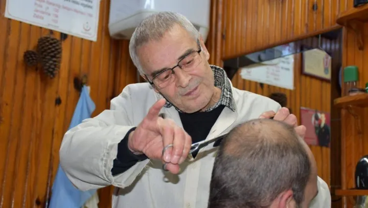 Bursa'da bir berber 57 yıldır makası elinden bırakmadı