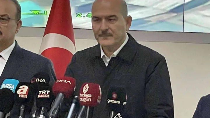 Bursa Emniyet Müdürlüğü Kent GÜvenlik Yönetim Sistemi binasında Emniyet Genel Müdürü Mehmet Aktaş, Bursa Valisi Yakup Canbolat, Bursa Emniyet Müdürü Tacettin Aslan, İl Jandarma ve Sahil Güvenlik komutanlarıyla kamera karşısına geçen Bakan Soylu, detayları paylaştı.