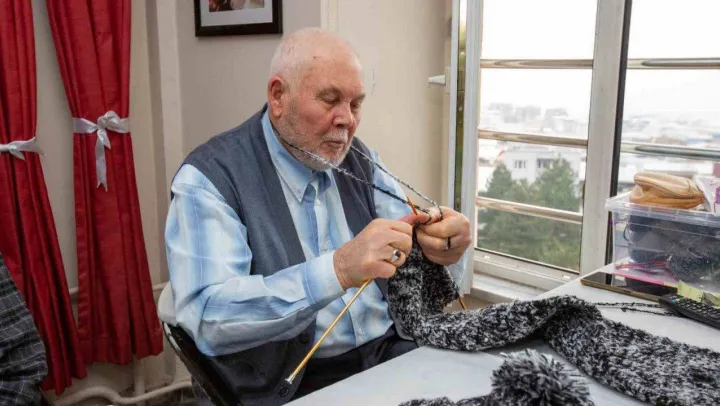 Bursa'da huzurevi sakinleri depremzedeler için atkı, bere, eldiven örüyor