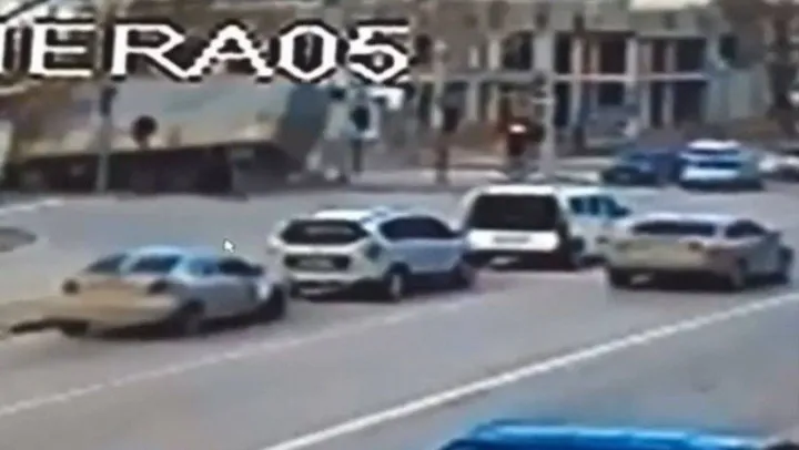 Kamyonun devrilme anı saniye saniye güvenlik kameralarına yansıdı.