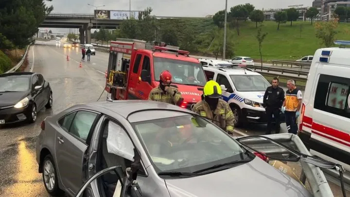 Bursa'da yağmur sebebiyle kayganlaşan yolda bariyerlere çarpan otomobilin sürücüsü hayatını kaybetti.