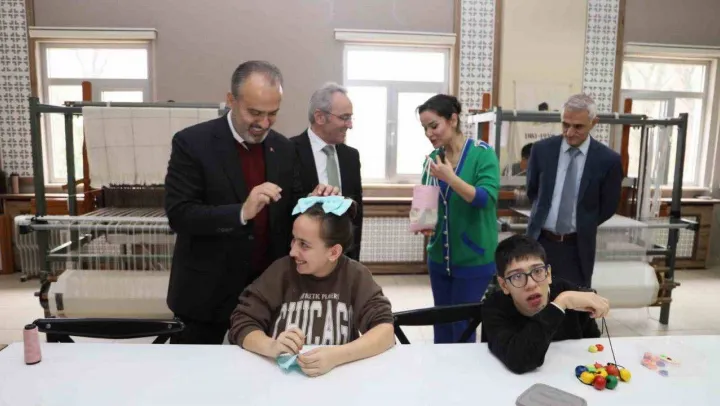 Bursa Büyükşehir Belediye Başkanı Alinur Aktaş, Mehmet Torun Aziz Torun Özel Eğitim Uygulama Okulu'nda eğitim gören özel öğrencilerle bir araya geldi. Okulun dokuma, el sanatları ve seramik atölyelerini gezen Başkan Aktaş, üretimde yeteneklerini gösteren özel öğrencilerle sohbet etti.