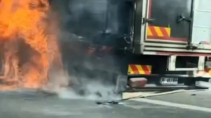 Bursa'da seyir halindeki tır alevlere teslim oldu. Sürücü canını zor kurtardı.
