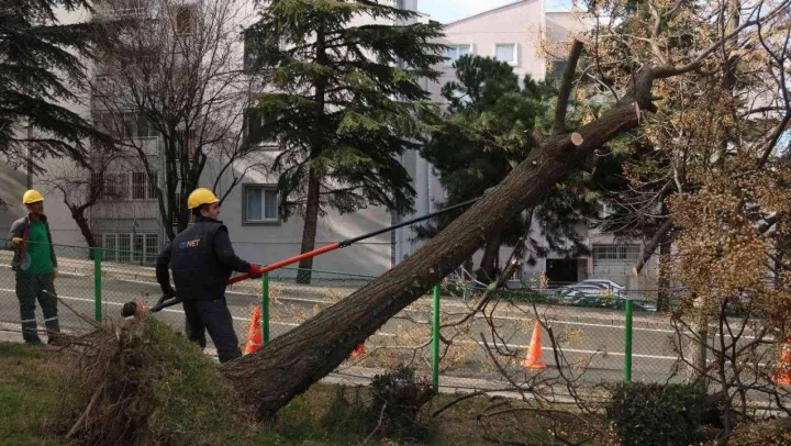 Lodos nedeniyle yıkılan ve yıkılmak üzere olan ağaç ise Yıldırım Belediyesi ekiplerince kesildi.