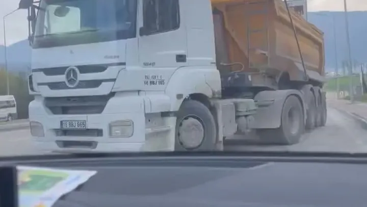 Yol ayrımından girmek için hareket eden otomobil ise, karşısında gördüğü kamyonu görünce neye uğradığını şaşırdı. Ters yönden gelen 16 BBJ 665 plakalı kamyon, herkesin canını hiçe sayması, 10 dakika veya 10 kilometre kaybetmek istememek için 'pes' dedirten hareketi, saniye saniye cep telefonu kamerasına yansıdı.