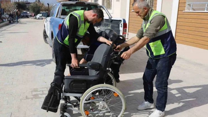 Hatay'da deprem mağduru vatandaşların yaralarını sarmak için mahalle mahalle gezen Bursa Büyükşehir Belediyesi ekipleri, 'Serebral Palsi' hastası bir gencin ihtiyaç duyduğu tekerlekli sandalyeyi Bursa'dan temin ederek ailesine teslim etti.