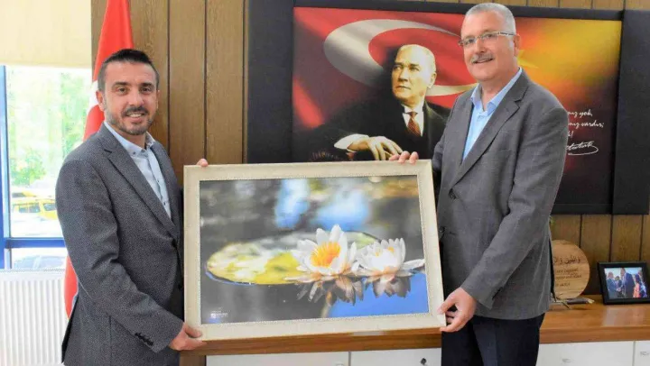 Ziyaret sonunda Başkan Özkan Başkan Tanır'a, ilçenin sembol çiçeklerinden olan Nilüfer çiçeğinin yer aldığı tablo hediye etti.