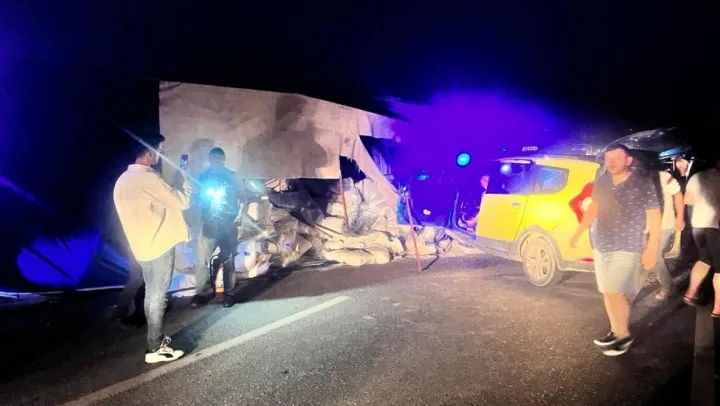 Edinilen bilgiye göre kaza; Bursa-İzmir karayolu TİGEM Karacabey harası yakınlarında, saat 22.30 sıralarında meydana geldi. Hüseyin A.'nın kullandığı 03 L 23034 plakalı tır, İzmir yolunda ilerlerken direksiyon hakimiyeti kaybedilince orta refüjde yan yattı. Tır yan yatmasının ardından sürüklenerek karşı şeridi kapatırken, Bursa istikametine seyir halinde olan Beyhan G.'nin kullandığı 16 T 6024 plakalı taksi tırdan yola saçılan yüke çarptı.