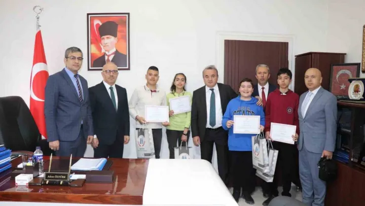 Kaymakam Öztürk, öğrencilerin bu başarısını kutlayarak eğitim öğretim hayatlarında başarılar diledi. Ziyarette Mehmet Akif Ersoy Ortaokulu Müdürü Ahmet Kara, Yavuz Sultan Selim Ortaokulu Özcan Canpolat ve Fen Lisesi Müdür Vekili Levent Sağıroğlu hazır bulundu.