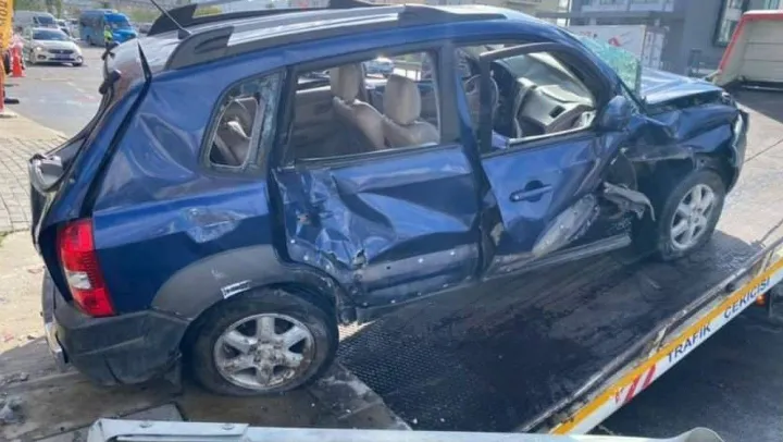 Büyükçekmece'de servis minibüsü kazası kamerada