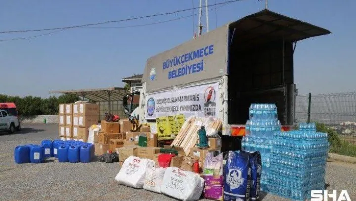 Büyükçekmece Belediyesi, yangın bölgelerinde görev yapan ekipler, gönüllüler, yangından etkilenen vatandaş ve hayvanlar için ihtiyaç doğrultusunda hazırlanan malzemeler yola çıktı.