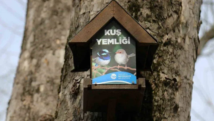 Sakarya Büyükşehir Belediyesi tarafından şehrin park ve meydanlarına yerleştirilen kuş yemlikleri, yiyecek bulmakta zorlanan kuşlar için beslenme olanağı sağlıyor.