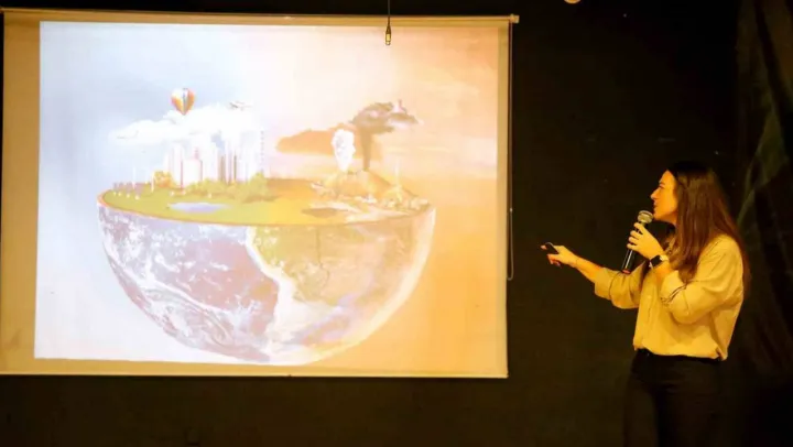 Sunumda iklim değişikliği sonucu yaşanan sel, kuraklık, orman yangınları, erozyon gibi meteorolojik karakterli afetlerin günlük yaşantımızı nasıl etkilediği anlatıldı. Aynı zamanda iklim değişikliği ile mücadele etmek için yenilenebilir enerji kaynaklarının önemi, etkin ve tasarruflu su kullanım yöntemleri, ulaşımda toplu taşıma ve bisiklet kullanımının yaygınlaştırılmasından, atık yönetim sistemleri ve geri dönüşümün öneminden bahsedildi.