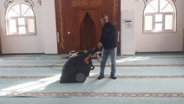 Gölcük'te Ramazan ayında vatandaşların temiz bir ortamda ibadetlerini yerine getirmeleri için camilerde temizlik çalışması başlatıldı.