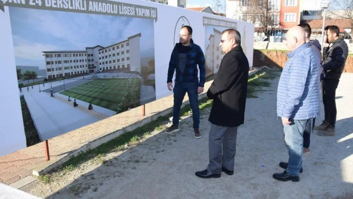 Çanakkale'nin Çan ilçesinde inşaatı devam eden Çan Anadolu Lisesi incelendi.