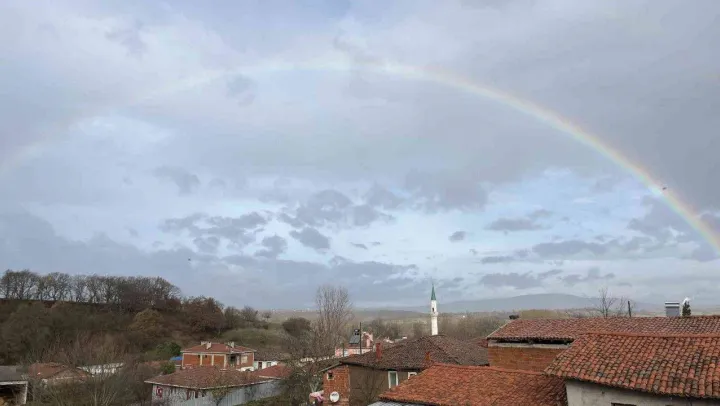 Çanakkale'nin Çan ilçesine bağlı Küçükpaşa köyünde sabah saatlerinde gökyüzünde oluşan gökkuşağı büyüledi.