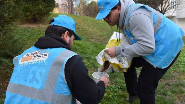 Yıldırım'da soğuk hava nedeniyle yiyecek bulmakta zorlanan sokak hayvanlarına Değirmen Gençlik İyilik Ekibi şefkat elini uzatmaya devam ediyor.