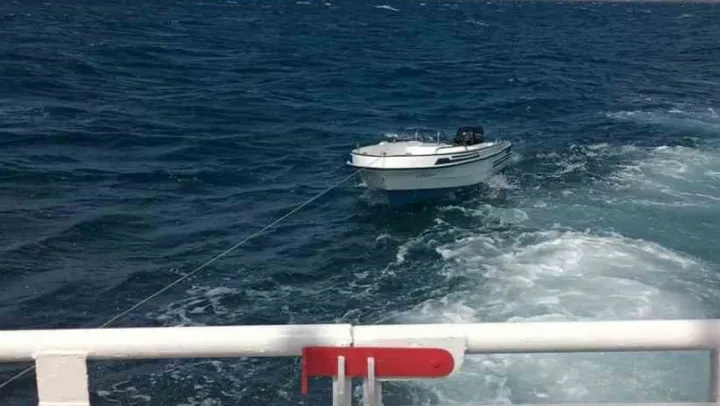 Çanakkale Boğazı'nda sürüklenen başıboş tekne Kıyı Emniyeti Genel Müdürlüğüne ait bot ile yedeklenerek Lapseki Balıkçı Barınağı'na yanaştırıldı.