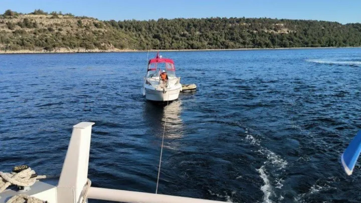 Çanakkale Boğazı'nda Şehitler Abidesi önünde makine arızası nedeniyle içinde 1 kişinin bulunduğu sürüklenen 7 metrelik özel tekne, Kıyı Emniyeti Genel Müdürlüğüne ait bot ile yedeklenerek Mehmetçik Balıkçı Barınağına yanaştırıldı.