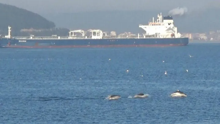 Çanakkale Boğazı'nda yunuslardan görsel şölen