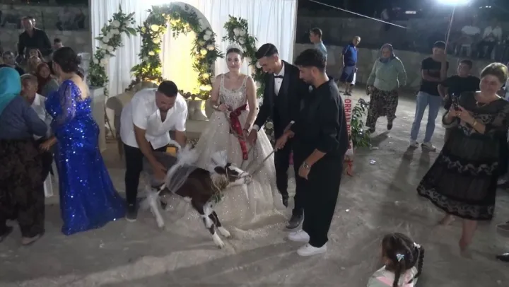 Çanakkale'nin Ayvacık ilçesinde düğün hediyesi olarak çifte, buzağı hediye edildi.