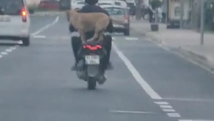 Çanakkale'nin Gelibolu ilçesinde motora artçı olarak binen köpek görenleri hem şaşırttı hem de neşelendirdi. O anları bir başka araçta olan vatandaş cep telefonu kamerasıyla kayda aldı.