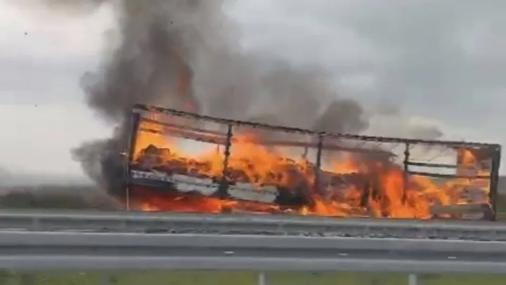 Öte yandan, tırın dorsesinin yanma anları ise 1915 Çanakkale Köprüsü ve Malkara-Çanakkale Otoyolunda geçen diğer sürücüler tarafından cep telefonuyla kaydedildi.
