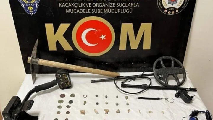 Çanakkale İl Emniyet Müdürlüğü KOM Şube Müdürlüğü ekiplerince, kaçakçılık suçlarıyla mücadele çerçevesinde şüpheli S.D'nin ikametgahında arama yapıldı. Yapılan aramalarda, 27 sikke, yüzük, ok ucu, 24 metal obje, 2 dedektör ve ekipmanları ve kazma ele geçirildi.