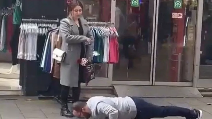 Pendik'te bir kadın yanında bulunan adama çarşı ortasında şınav çektirdi. Görenleri şaşkına çeviren o anlar bir vatandaşın cep telefonu kamerasına yansıdı.