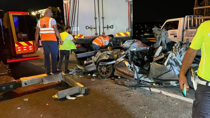 Kaza dün akşam saatlerinde Çatalca TEM Otoyolu'nda yaşandı. İddiaya göre seyir halinde lastiği patlayan bir TIR'dan otoyola parçalar saçıldı. Seyir halindeki bir kamyonun şaftına giren lastik parçaları aracın arızalanmasına neden oldu. Bu sırada ailesiyle birlikte otomobiliyle seyreden Muhittin Şeker arızalı kamyonu görerek son anda durdu. Fakat arkadan gelen bir başka kamyonet duramayarak önce önünde seyreden bir TIR'a, ardından da Muhittin Şeker ve ailesinin içerisinde bulunduğu otomobile çarptı. Kazada arızalanan kamyon ile kamyonet arasında metal yığınına dönen otomobilde bulunan 8 kişi araç içerisinde sıkıştı.