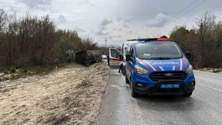 Çatalca İhsaniye yolunda direksiyon hakimiyetini kaybeden otomobil sürücüsü karşı şeritten gelen hafriyat kamyonu ile çarpıştı. Meydana gelen kazada otomobil şoförü ağır yaralanırken, yanındaki yolcu hayatını kaybetti.