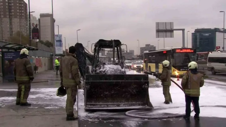 İstanbul'un Cevizlibağ ilçesinde E5'te seyir halinde olan iş makinesi bilinmeyen bir nedenle alev alev yandı. Yangın nedeniyle trafikte yoğunluk oluştu.