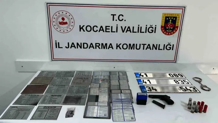 Operasyon kapsamında; 12 dorse, çekici, tabanca, 146 fişek, 46 araç ruhsatı, 15 şasi etiketi ve 3 araç plakası ele geçirildi.