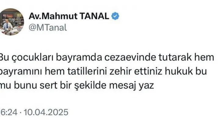 'Bu çocukları bayramda cezaevinde tutarak hem bayramını hem tatillerini zehir ettiniz hukuk bu mu bunu sert bir şekilde mesaj yaz.'