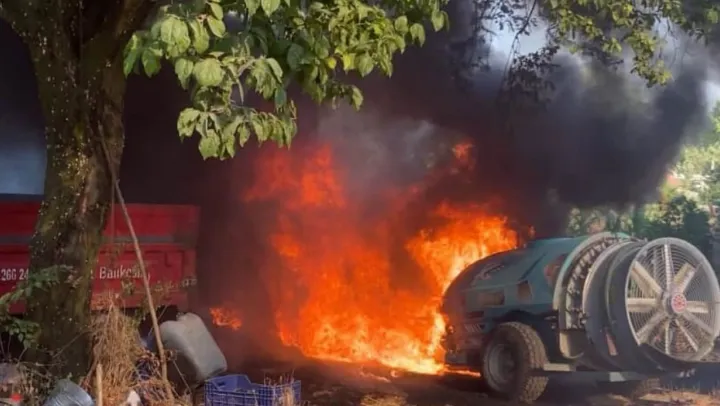 Bursa'nın İnegöl ilçesinde bahçedeki ilaçlama makinesi alev topuna döndü. Alevler samanlığa sıçramadan söndürüldü.