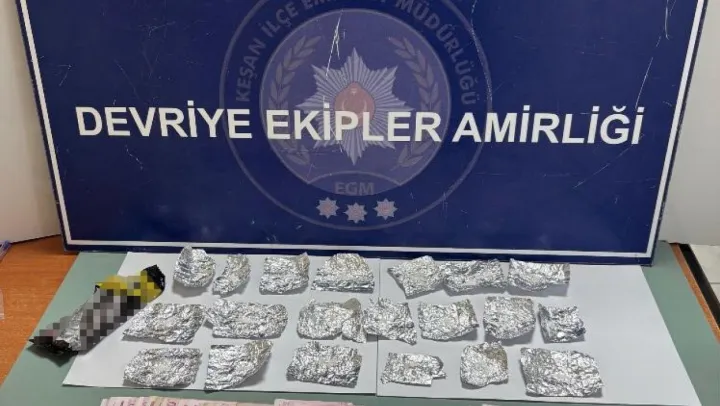 Alınan bilgiye göre, Keşan İlçe Emniyet Müdürlüğü ekipleri, Yeni Mescit Mahallesi Koru Sokak üzerinde durumundan şüphelendikleri A.Ö.'yü durdurdu. A.Ö.'nün üst aramasında, boş çikolata paketine saklanmış halde 20 adet alüminyum folyo içerisinde 3,45 gram uyuşturucu ile uyuşturucu satışından elde edildiği değerlendirilen 10 bin 400 TL ele geçirildi. Gözaltına alınan A.Ö. hakkında adli işlem başlatıldı.